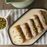 In serving dish,place bread roll ups,pour warm prepared milk.