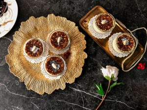 In a serving glass,add prepared sheer khurma then carefully place prepared date mousse disc over it.