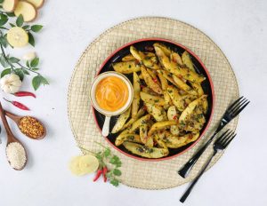 -In a bowl,add fried potatoes & coat well.