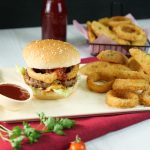 -On a burger bun,add & spread tomato ketchup,add iceberg leaves,beef patty,crispy onion rings,tomato ketchup & cover with top burger bun & serve with prepared crispy onion rings & potato wedges (makes 4).