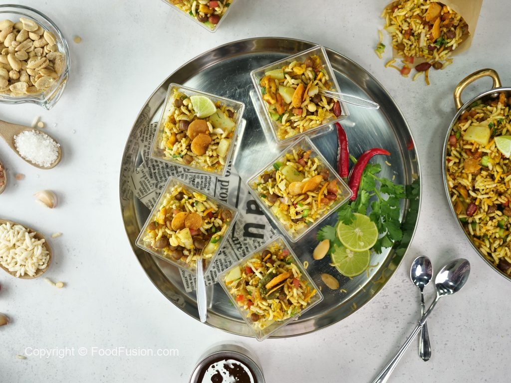 -In a wok,add puffed rice & dry roast on low flame until crispy & light golden (3-4 minutes).