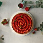 -Now transfer the rolled dough to 9-inch tart pan,press firmly down into the base to create an even layer,cut the edges with the help of knife,prick with fork & freeze for 30 minutes.