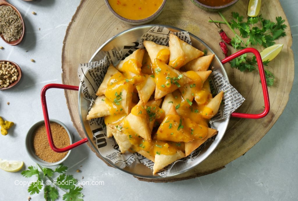 -On mini samosa,add prepared chutney,fresh coriander & serve!