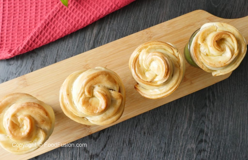 Chicken stuffing dal dein aur end sa carefully roll kertay hoye rose ki shape bana lein (makes 6-8).