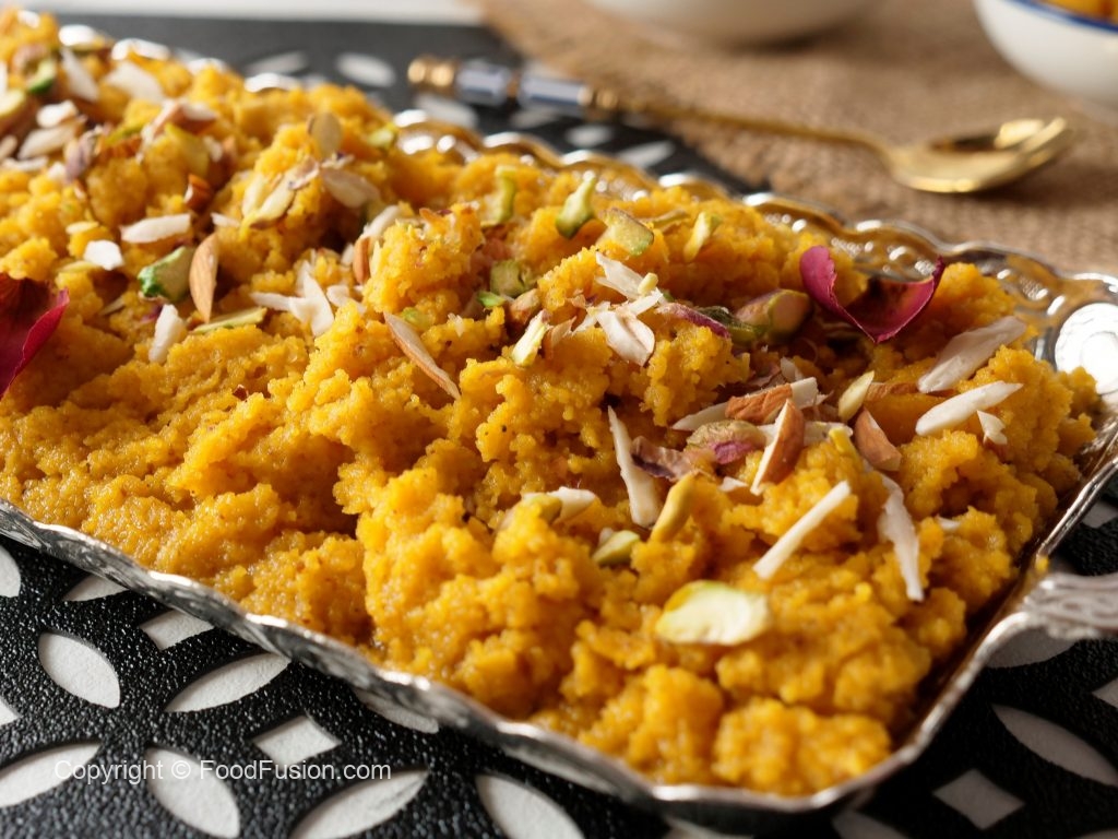Sooji dal ker ache tarhan mix karein aur halki ancch per khushbu anay aur color change ho janay tak paka lein (10-12 minutes).