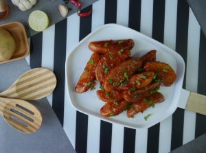 Add tomato ketchup,honey,vinegar,hot sauce,salt,mix well and cook for 1-2 minutes.