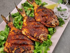 -Remove the fins of pomfret fish & make deep cuts on both sides.