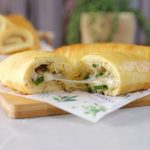 -Spread prepared garlic cheese filling or peanut butter or chocolate spread on the remaining half of the dough then roll out the dough & seal the sides carefully.