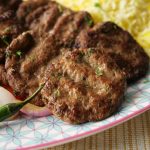 -In a chopper,add beef,onion,breadcrumbs,garlic paste,paprika powder,cumin powder,salt,black pepper powder,cayenne powder,coriander powder,baking soda,lemon juice & chop until well combined.
