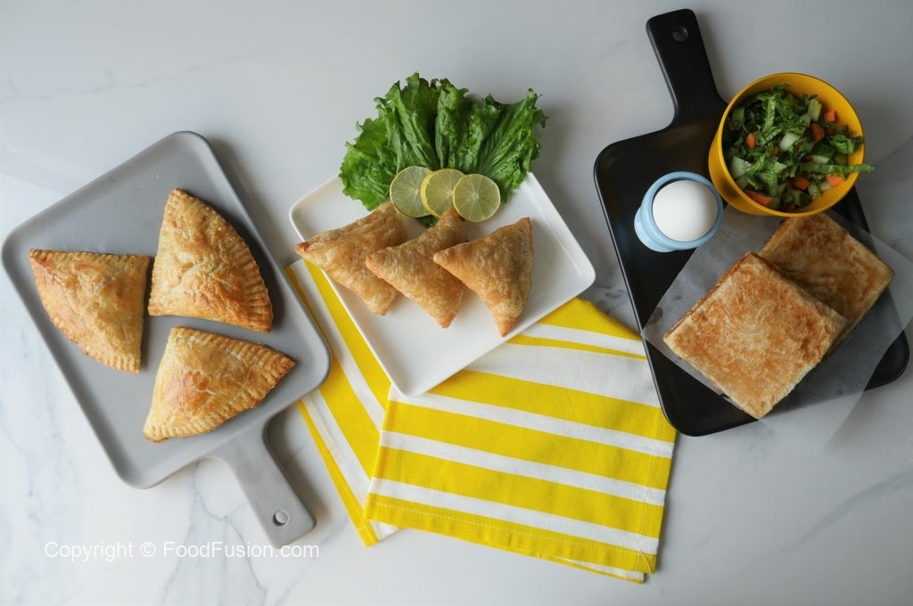 Take one part and fold in a cone shape,add prepared filling and seal the edges.