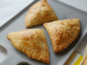 On one part,add & spread chocolate spread,fold and seal the edges with the help of the fork.