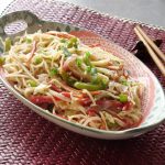 Add boiled spaghetti,white pepper powder,black pepper crushed,salt,chicken powder,soy sauce,hot sauce,vinegar and mix until well combined (1-2 minutes).