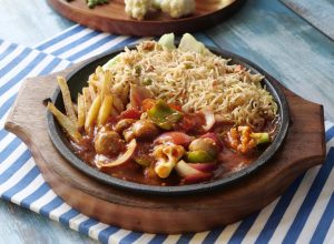 Makhan dal ker pheela lein,band gobhi leaves rakh ker upper sa fried rice,potato fried,stir-fried vegetables aur tayyar shashlik sauce dal ker serve karein!